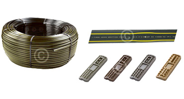 • एक्स्ट्रुडेड जोड रहित नलिका स्थायी रूप से लगाये ड्रीपर्स के साथ।.