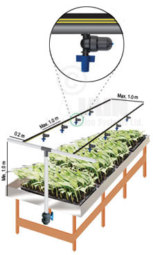 एमीटर प्रसारण बेन्चेस पर धुंध और सिंचाई के लिये द्वि-प्रयोजनीय।
